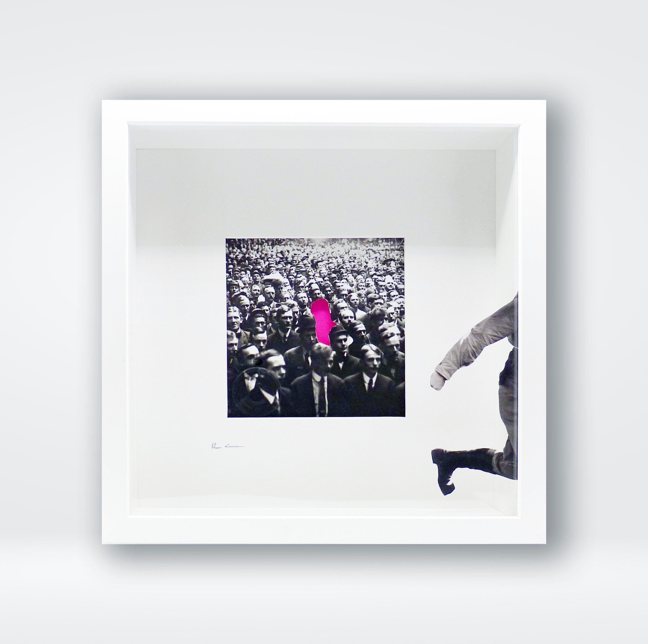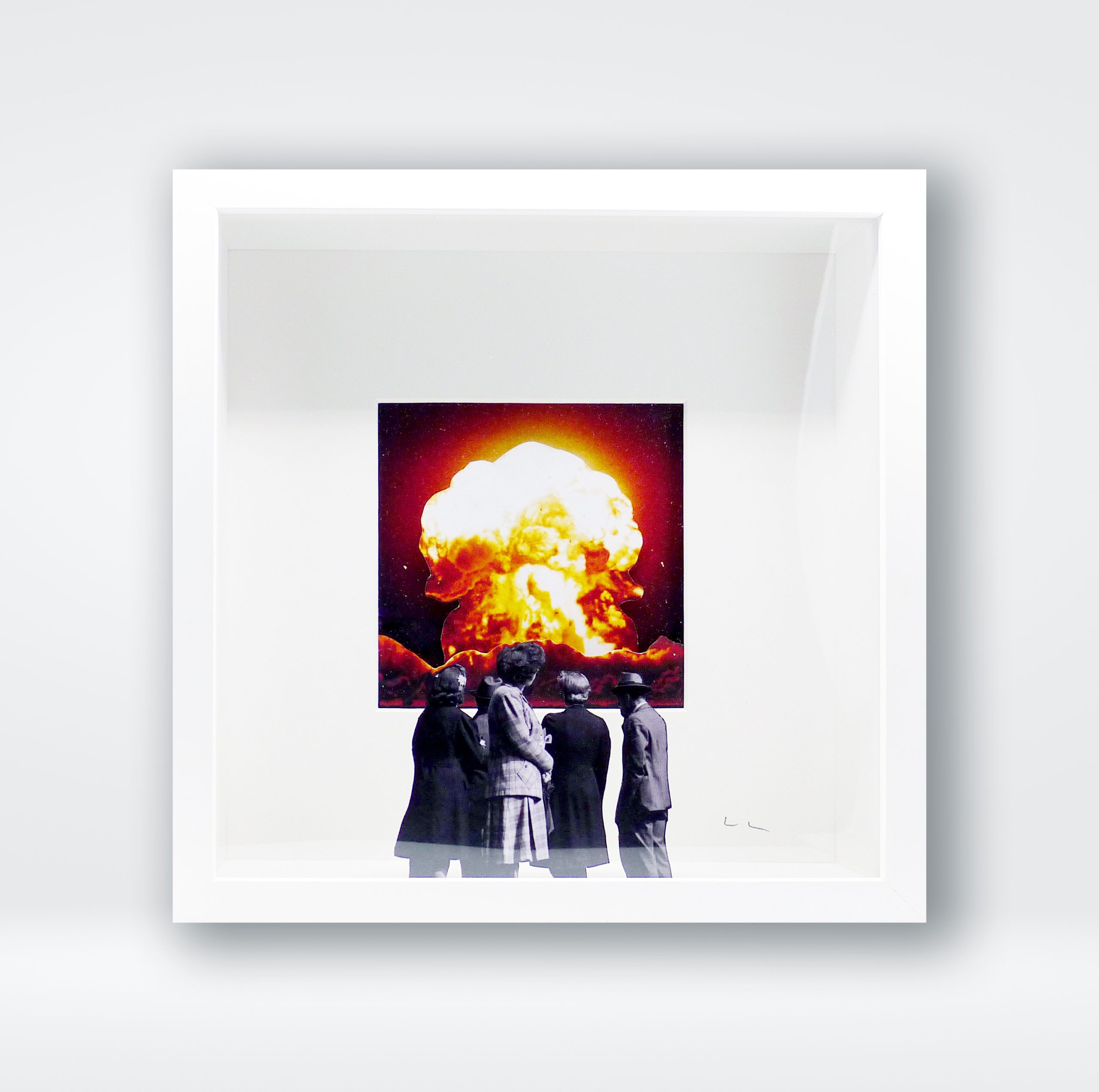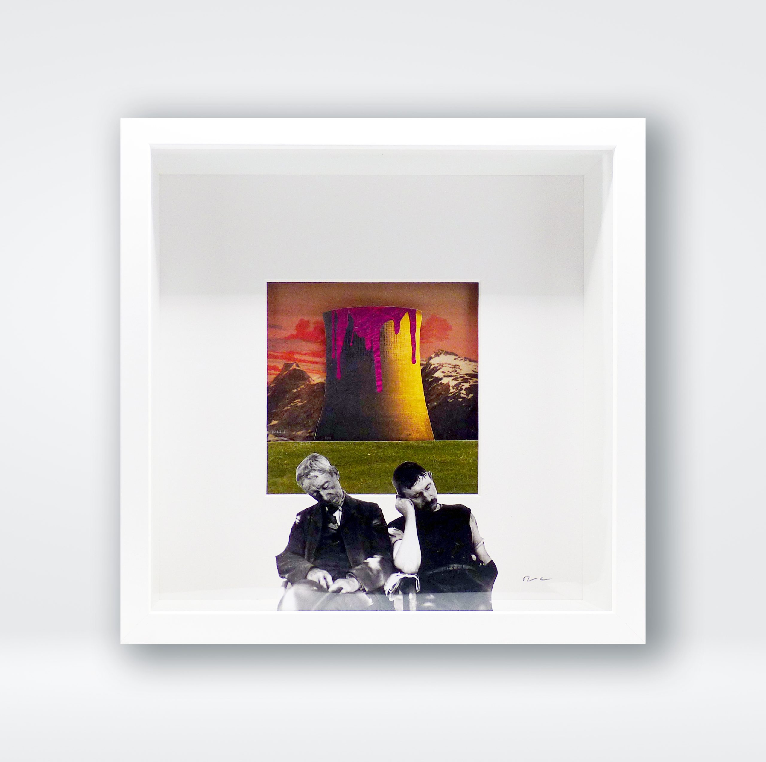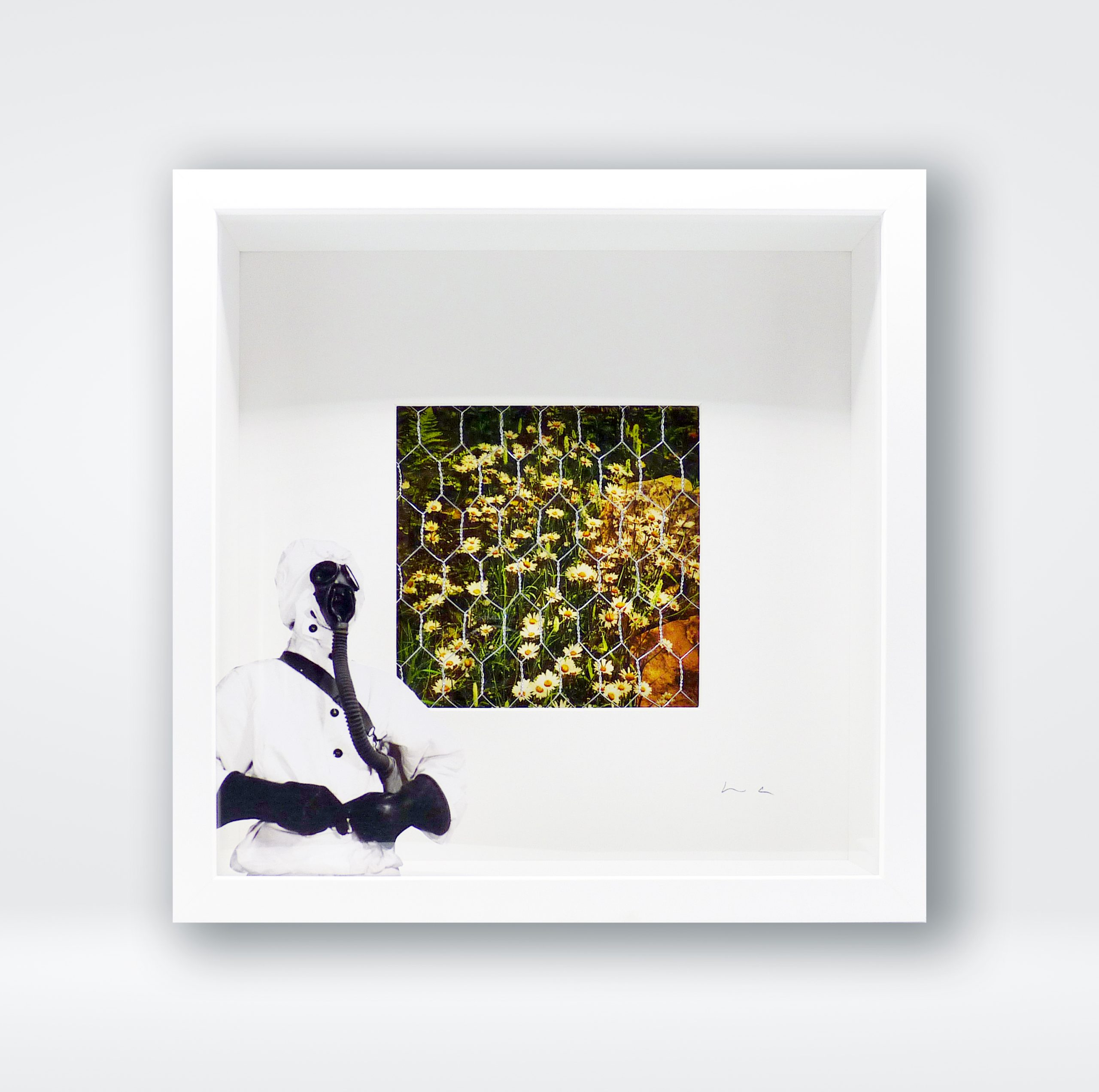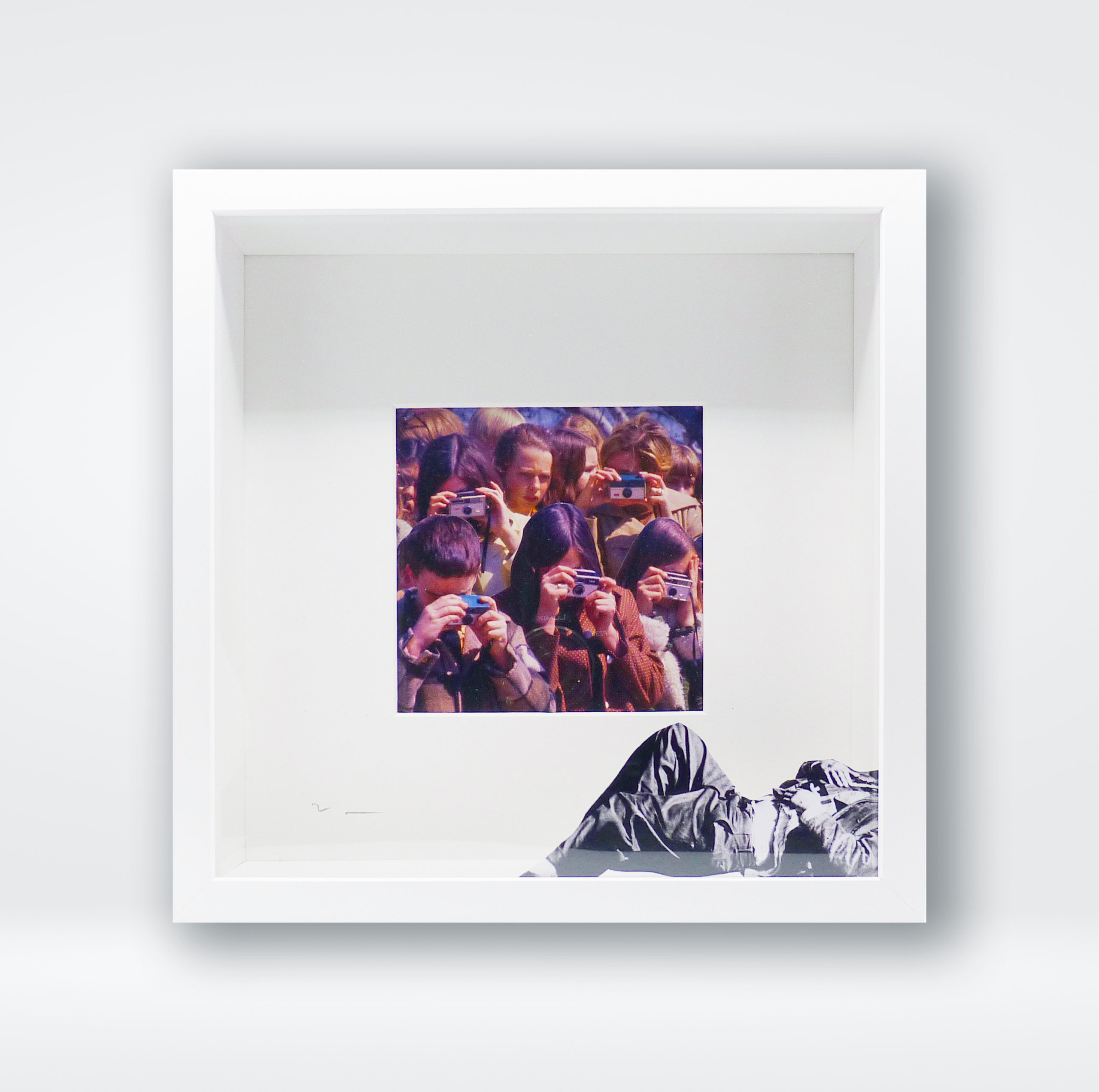 Cada obra en 12alcuadrado comienza con un marco sueco de nombre impronunciable. Dentro de ese espacio limitado y tridimensional, exploro la riqueza visual de fotografías antiguas, recortes de revistas, y otros tesoros gráficos. Estas imágenes, que han vivido sus propias historias, son la base para crear mis propios relatos que transitan entre el futuro, el presente y el pasado. Cada obra es un diorama donde los distintos planos se unen formando pequeñas escenas tridimensionales.